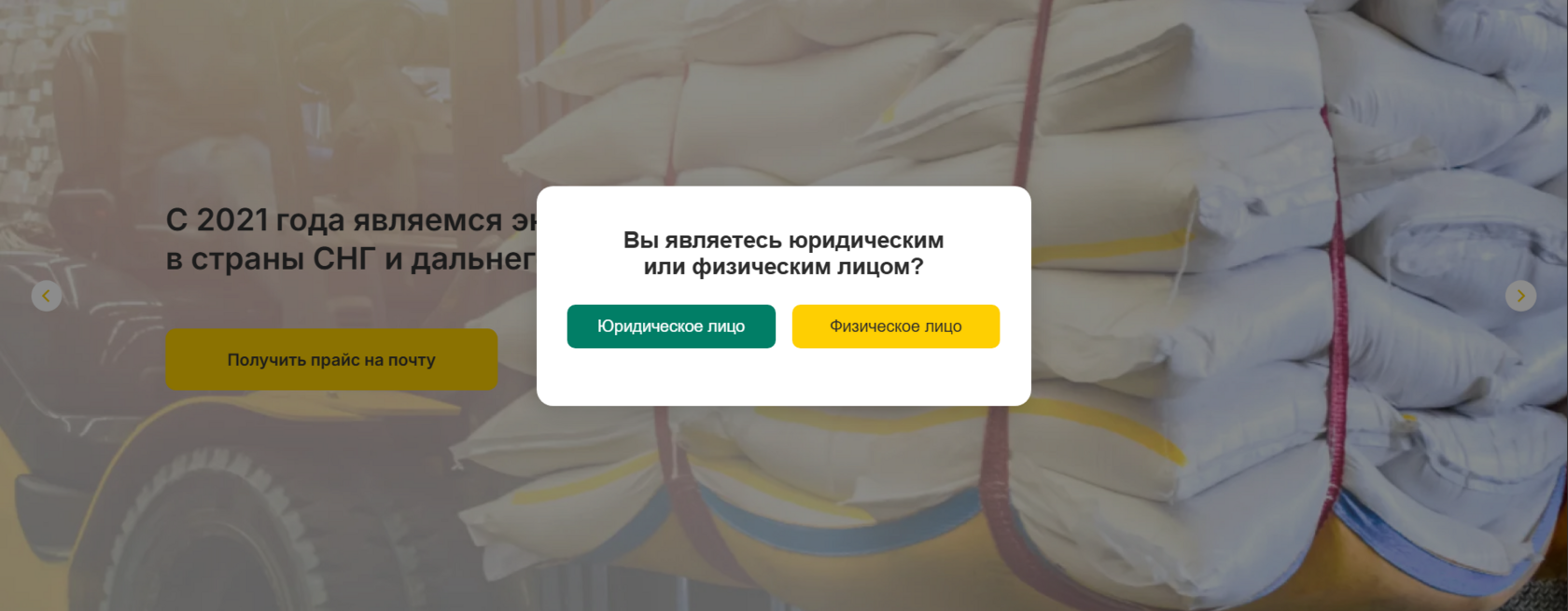 Данная модификация добавляет всплывающее окно при первом заходе на сайт, которое помогает разделить аудиторию, например, на юрлиц и физлиц. В попапе можно разместить две кнопки: каждая ведёт на свою страницу, либо одна из кнопок может просто закрывать окно и оставлять пользователя на текущей странице.